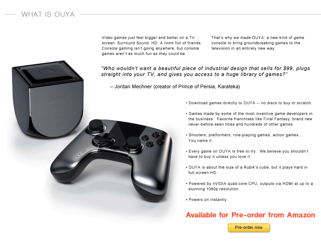 about the Ouya, thanks to being an avid member of Kickstarter. I did not support the Ouya during its time on